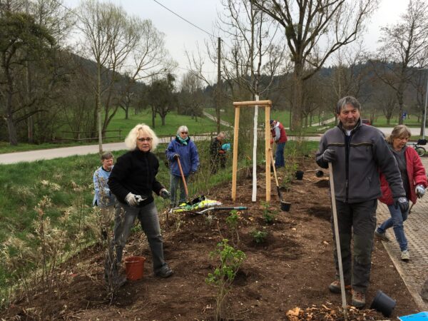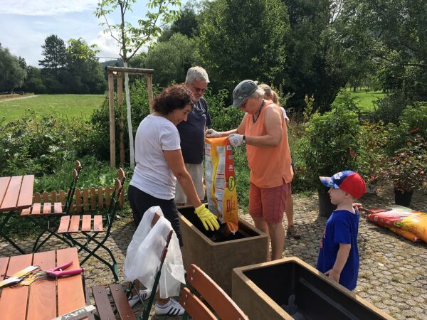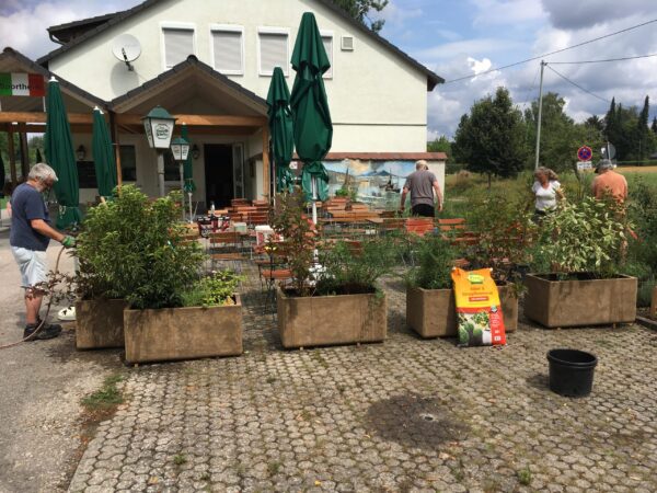 Der Bereich am Sportheim-Eingang wird neu gestaltet. Wenig später entsteht ein Biergarten.